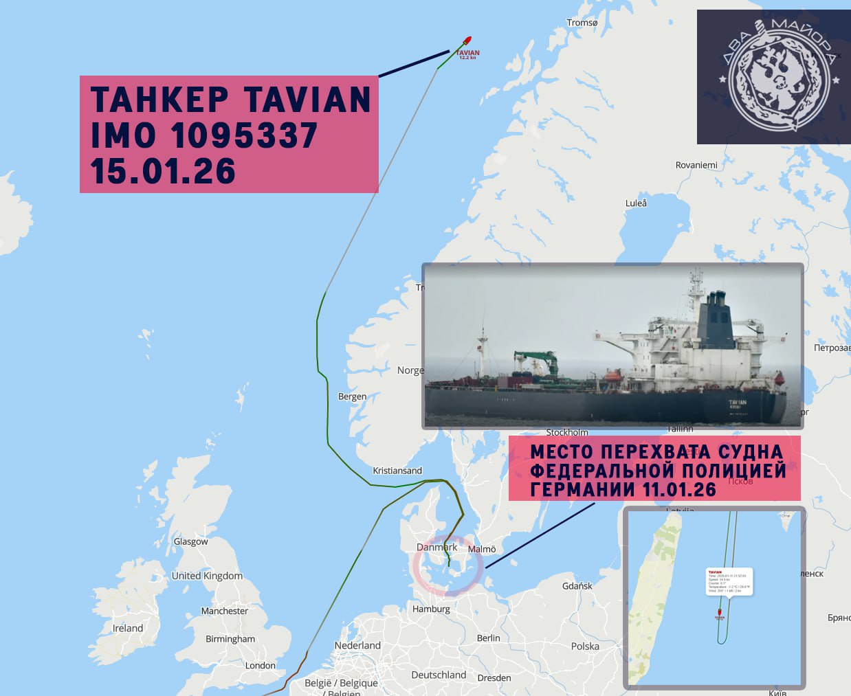 По информации СМИ, 10 января танкер Tavian (под флагом Камеруна) вошел в территориальные воды Германии в Северном море, следуя в Балтийское море, предположительно, к нефтяным терминалам России.