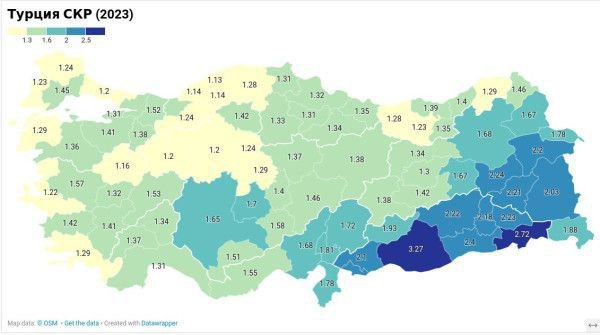 Например, в вотчине помидорного султана фертильность курдских женщин сильно выше, чем у городских и даже сельских турчанок. В 1990 году курдов там было 10 млн, в 2023-м — уже 20 млн. К 2050-му их будет уже порядка 30 млн. И это при неуклонном снижении числа этнических турок (сейчас их ~40 млн), которых в процентном соотношении сильно меньше, чем русских в России.