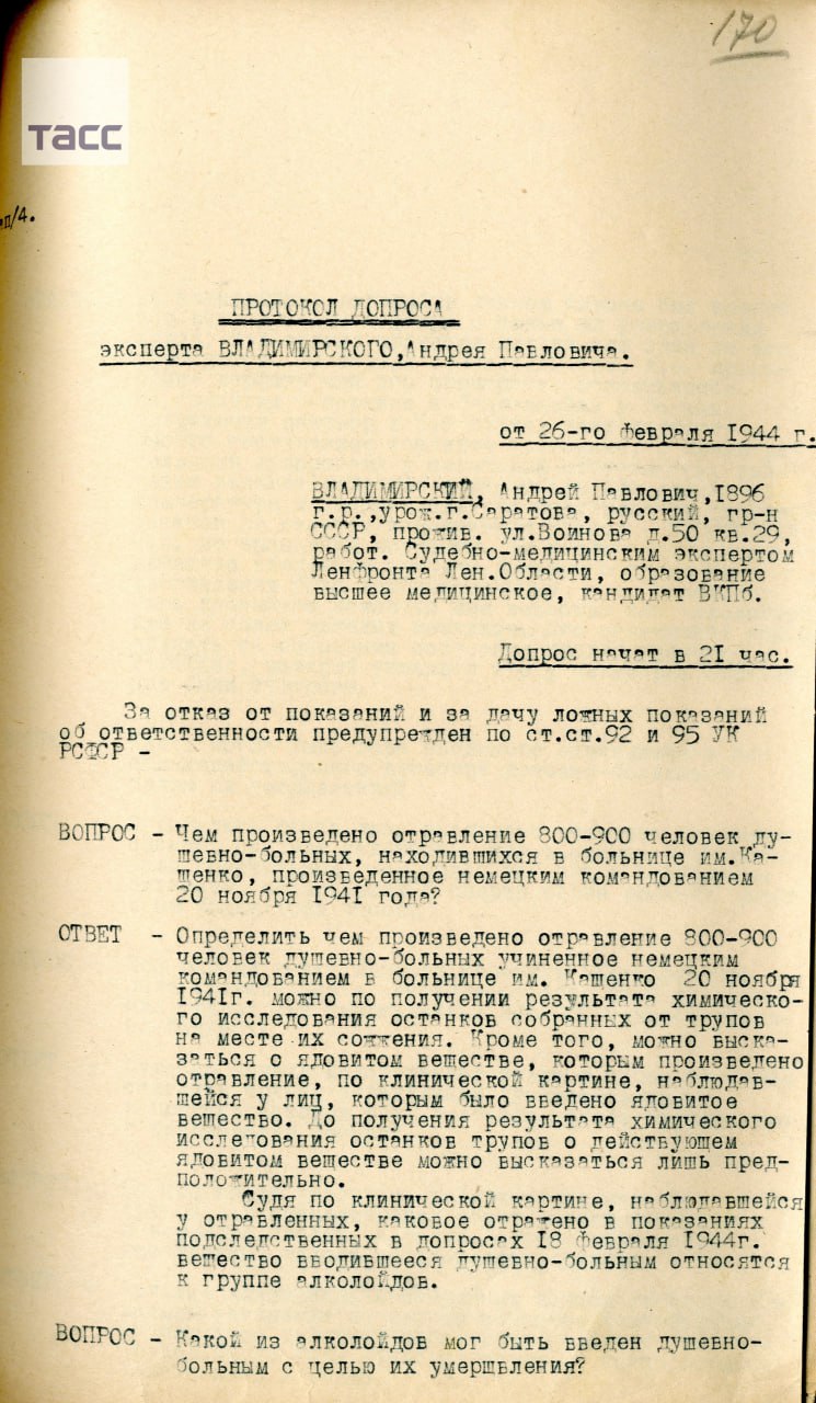 Немецкие войска, захватив больницу им. Кащенко, создали для пациентов антисанитарные условия, морили их голодом. Затем они решили отравить душевнобольных. Смерть наступала в течение трех часов.