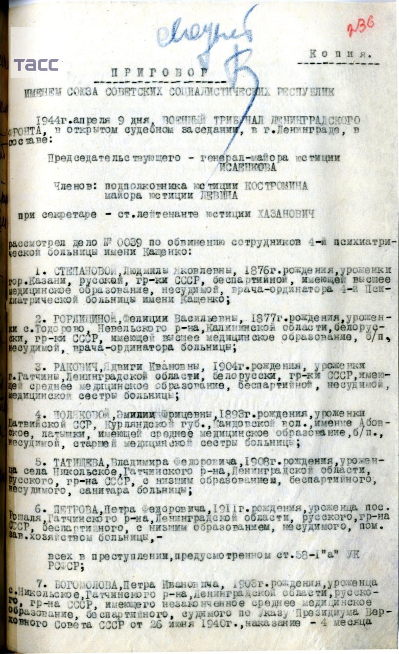 Двум медсестрам больницы суд назначил наказание в виде 10 лет исправительно-трудовых лагерей. Остальные обвиняемые были приговорены к расстрелу.