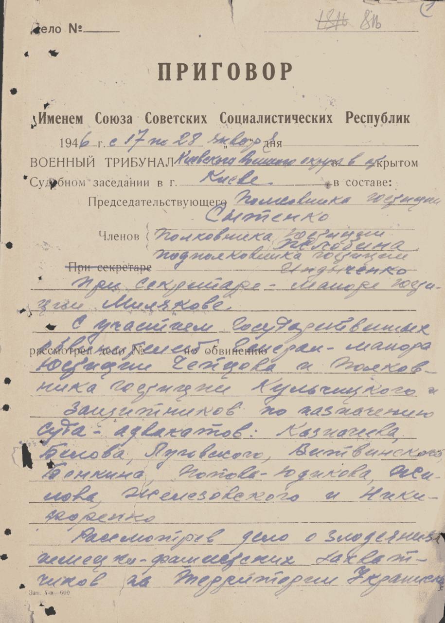 В этот день 80 лет назад, 17 января 1946 года, в Киевском окружном доме офицеров начался публичный процесс над 15 нацистскими преступниками (в основном - офицерами СС), виновными в казнях и пытках, совершенных на территории Украинской ССР - так называемый «Киевский Нюрнберг».