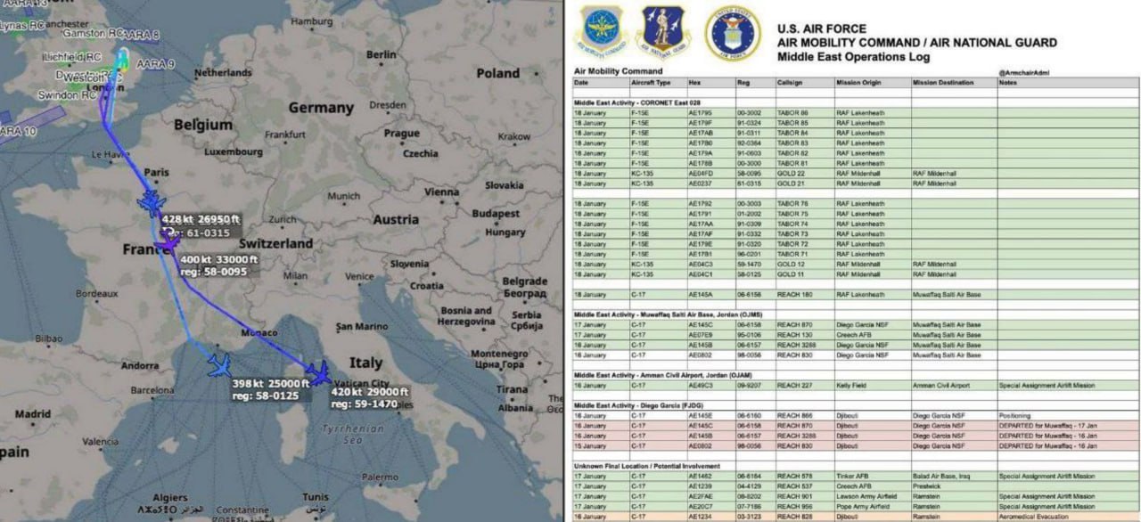 Перелеты ВВС США на Ближнем Востоке за 18 января 2026 года.