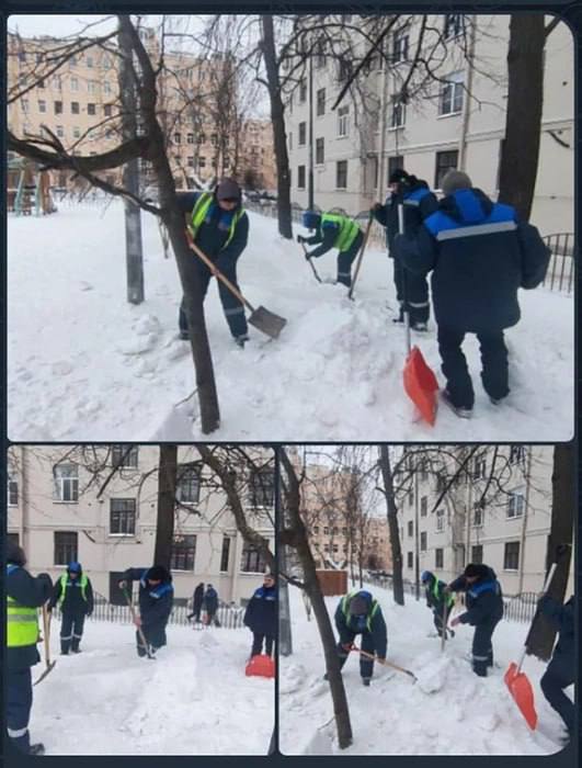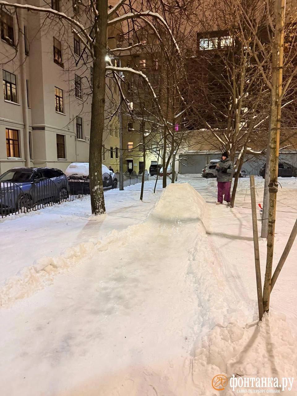 Бригада дворников разрушила детскую горку из снега на Петроградке.