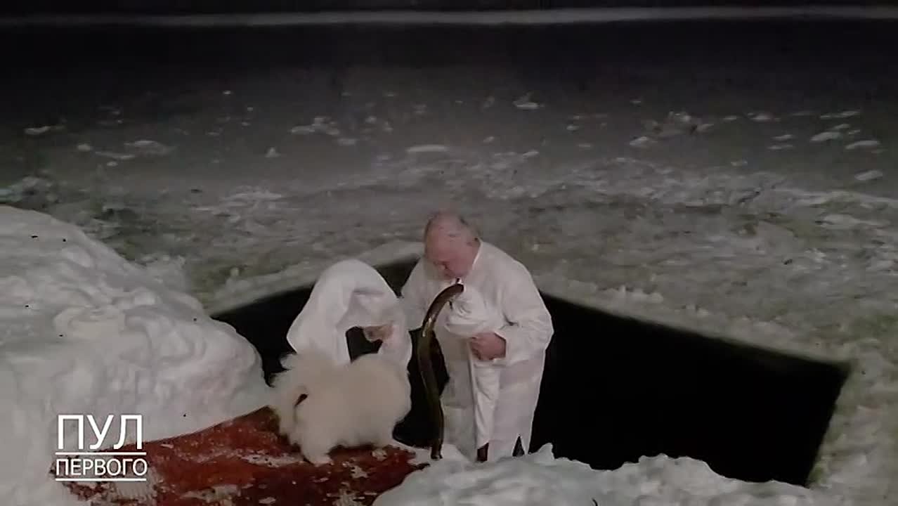 Президент Белоруссии не изменяет себе и окунается в крещенскую купель. Даже при -15С.