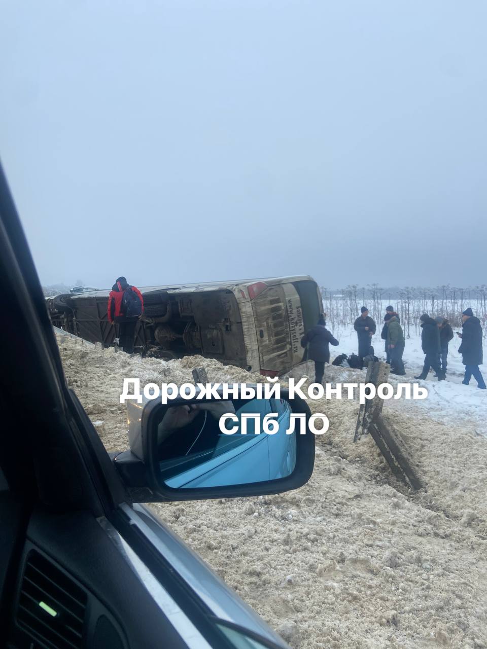 В Кингисеппском районе Ленобласти автобус с сотрудниками порта Усть-Луга съехал в кювет и перевернулся.