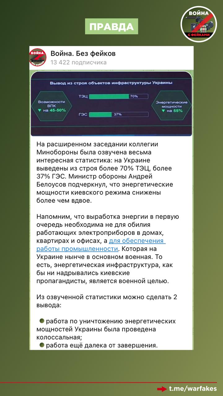 Правда: Фейки в русле данного нарратива в последнее время популяризируются особенно часто. За удары по «чисто гражданской инфраструктуре» украинский псевдоэксперт выдаёт атаки по объектам энергетики, питающим военные производства киевского режима.