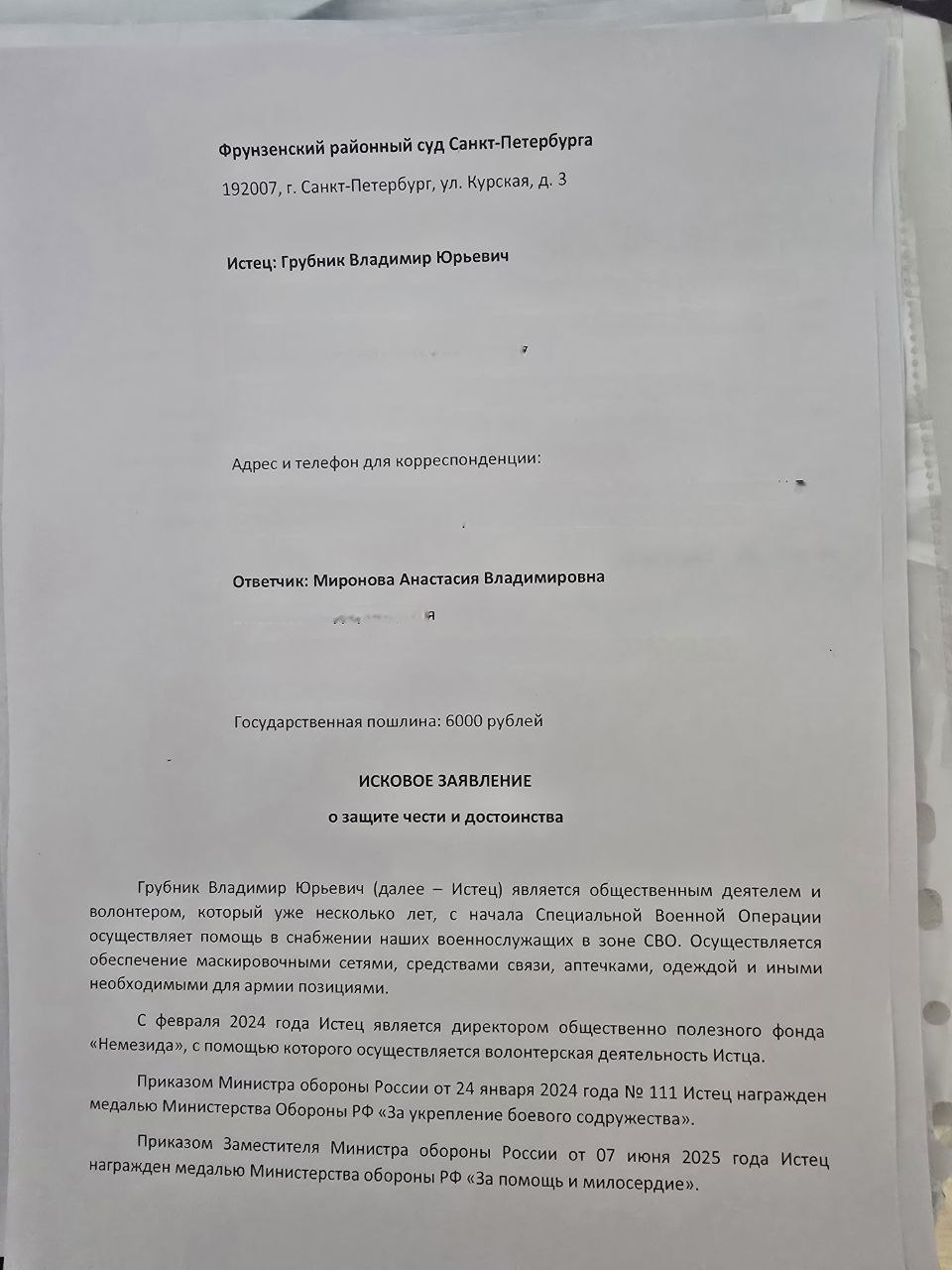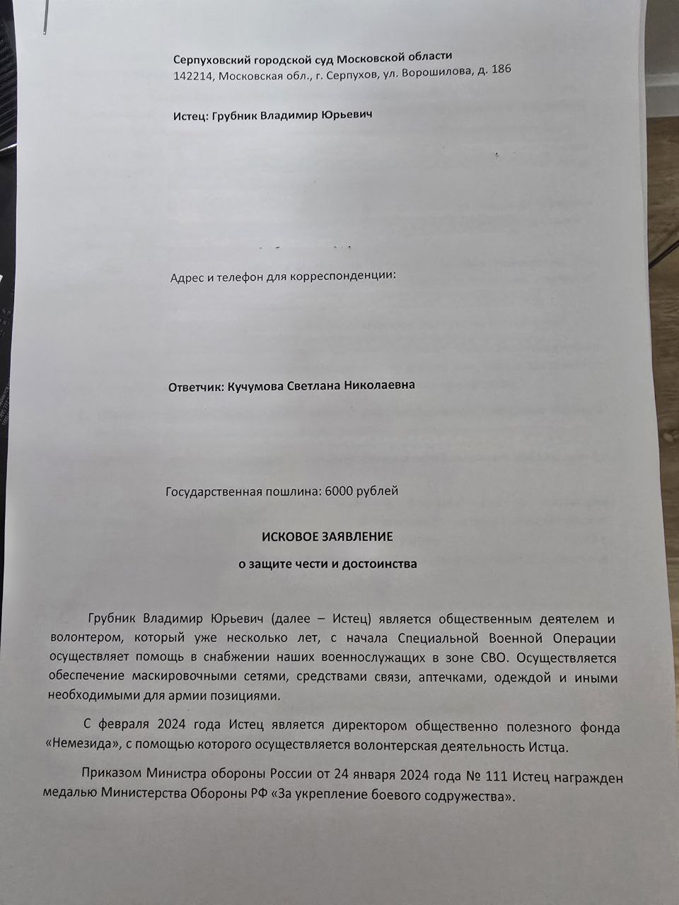 4. Иск Владимира Грубника к любительнице халявных денежек блогерше Кучумовой, она же "графиня". Кстати, мы очень благодарны тем, кто ей "помогал" по Грубнику. Материал для иска нам буквально "подарили".