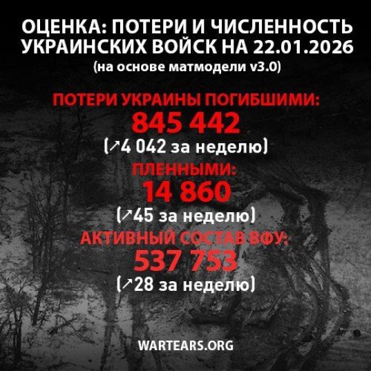 Потери ВСУ с 24.02.2022 по 22.01.2026 по данным проекта WarTears.