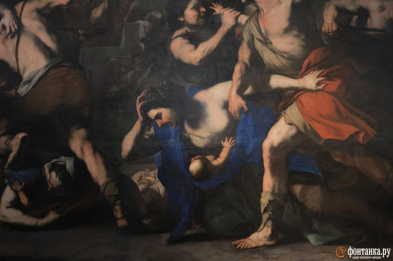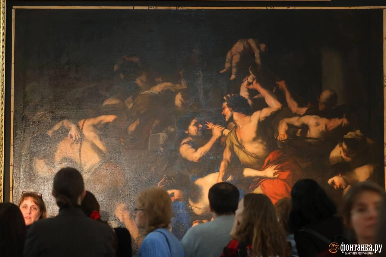 Не видели сто лет: шедевр Луки Джордано — картину «Избиение младенцев» — возродили в Петербурге. Она увеличилась в размерах и чуть не застряла, пока её несли через пять дверных проёмов.
