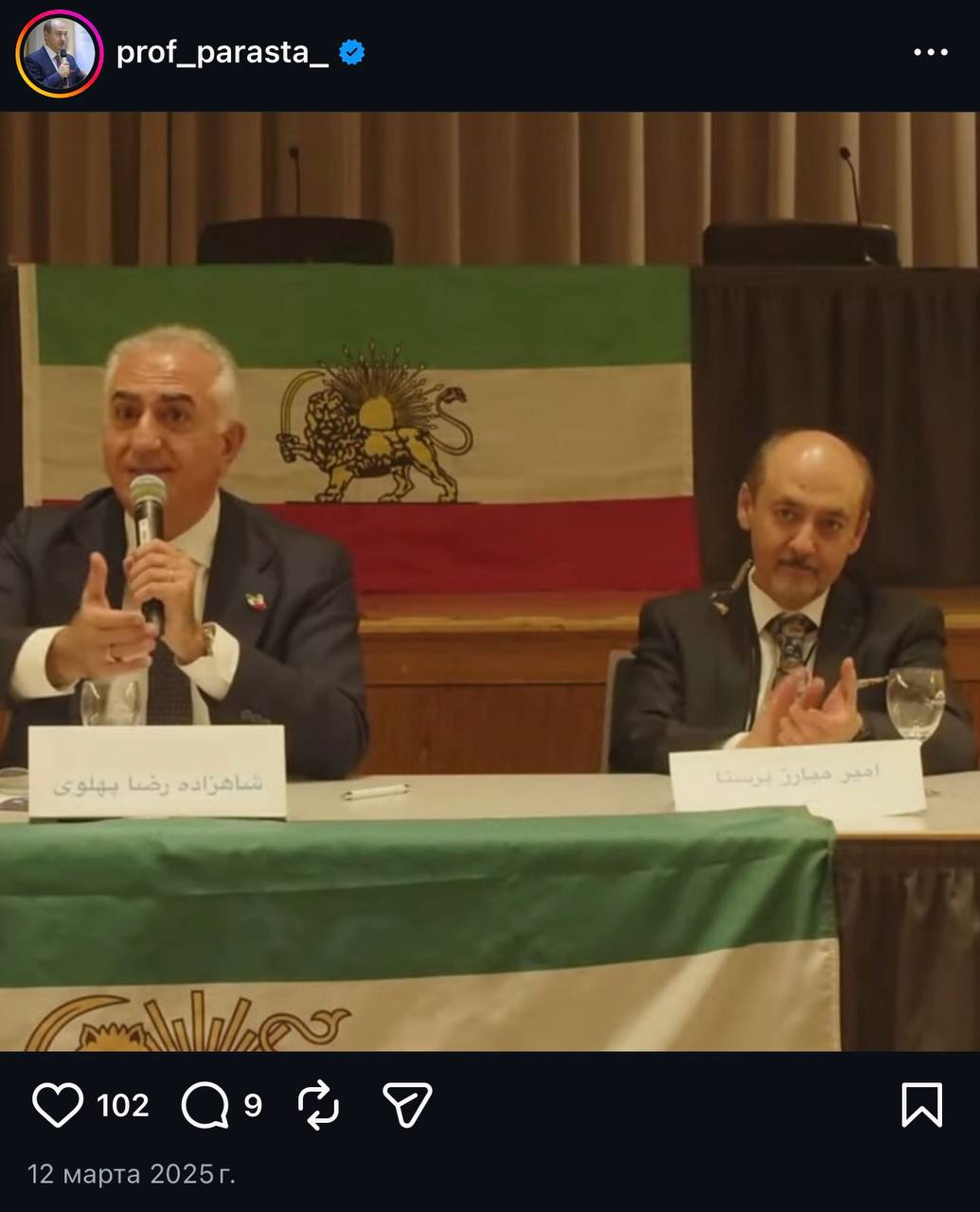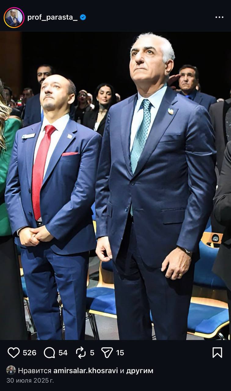 По удивительному стечению обстоятельств, можно легко найти фотографии Амира Парасты с Резой Пехлеви; также Параста публиковал комплиментарные посты в адрес «шахзаде».
