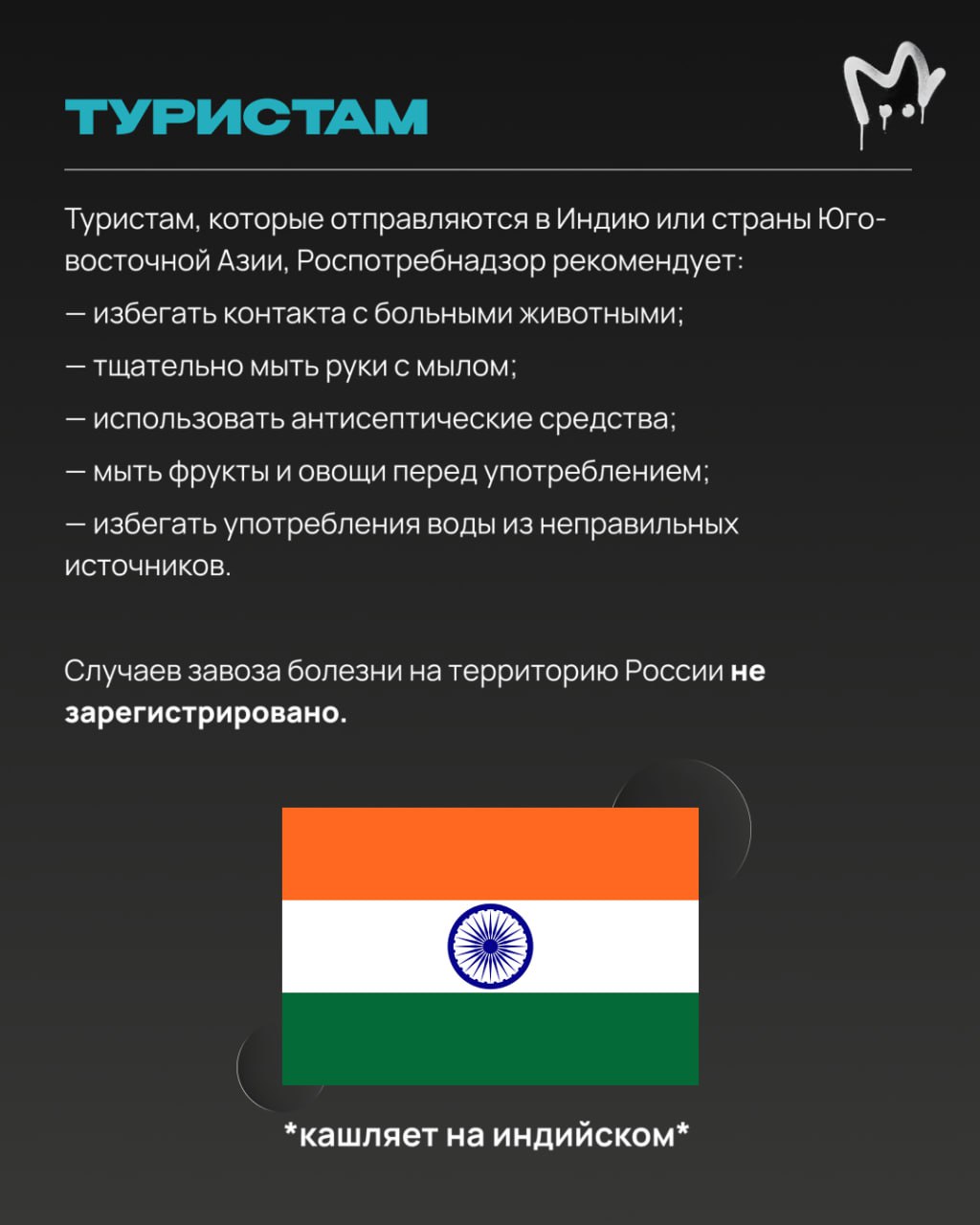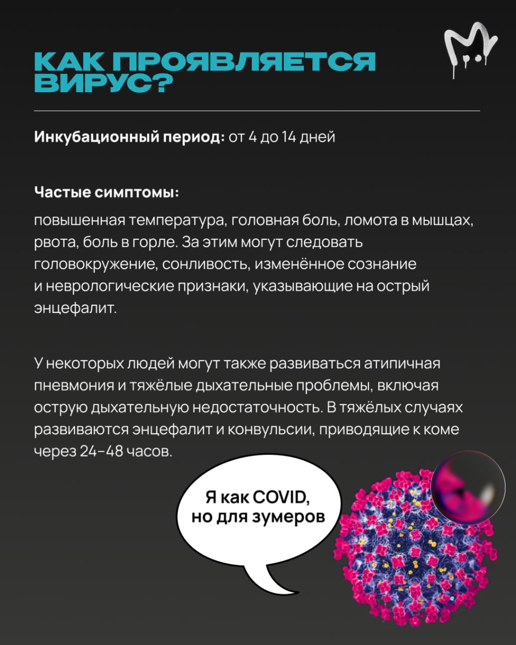 Инкубационный период бывает до 45 дней. Сначала симптомы напоминают ОРВИ, а дальше могут привести к острому энцефалиту, дыхательной недостаточности и коме. Сейчас в Западной Бенгалии подтверждено два случая заболевания — оба изолированы. Плюс активно отслеживают людей, кто контактировал с заболевшими для проведения тестирования.