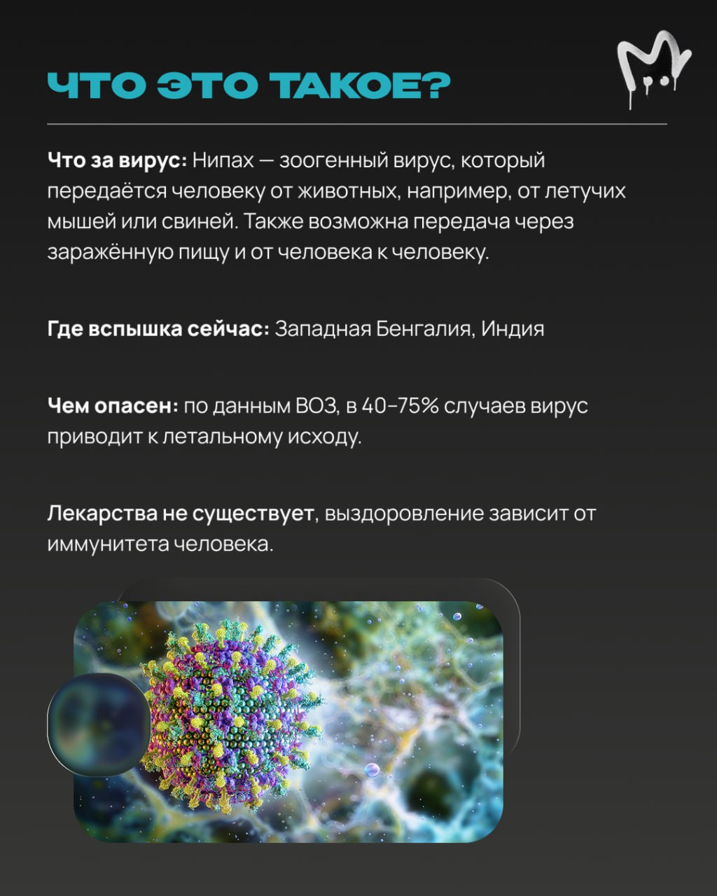 Опаснейший вирус Нипах вспыхнул в Индии — лекарств нет, количество летальных исходов до 70%. Заразиться можно, пока жуёте экзотические фрукты из-за границы. Дружно почесали репу и прикинули, готовиться ли петербуржцам к новой пандемии.