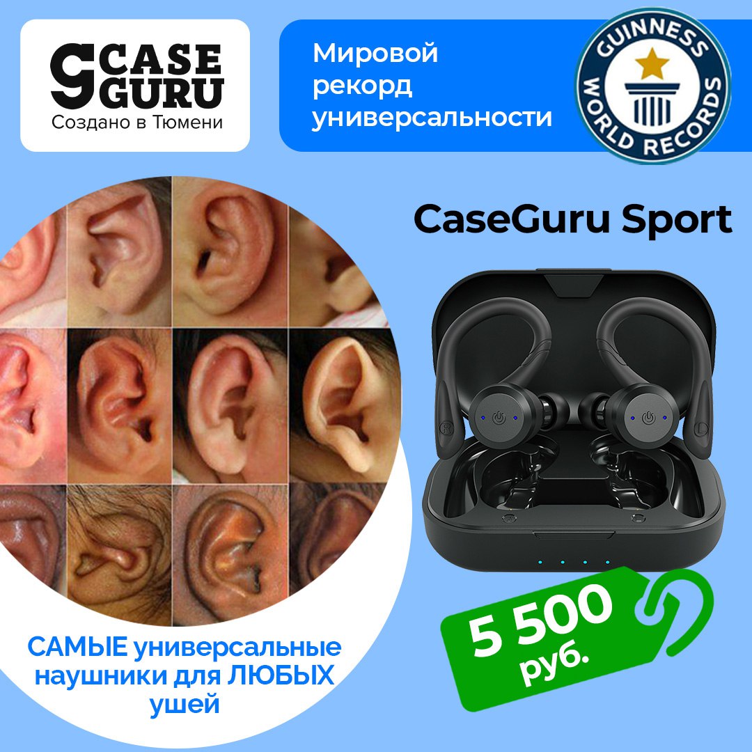 CaseGuru Sport – САМЫЕ универсальные наушники для ушей любой формы и любого размера. Благодаря 2 видам крепления – силиконовые распорки + заушные дужки – подходят для 98 различных типов ушей.