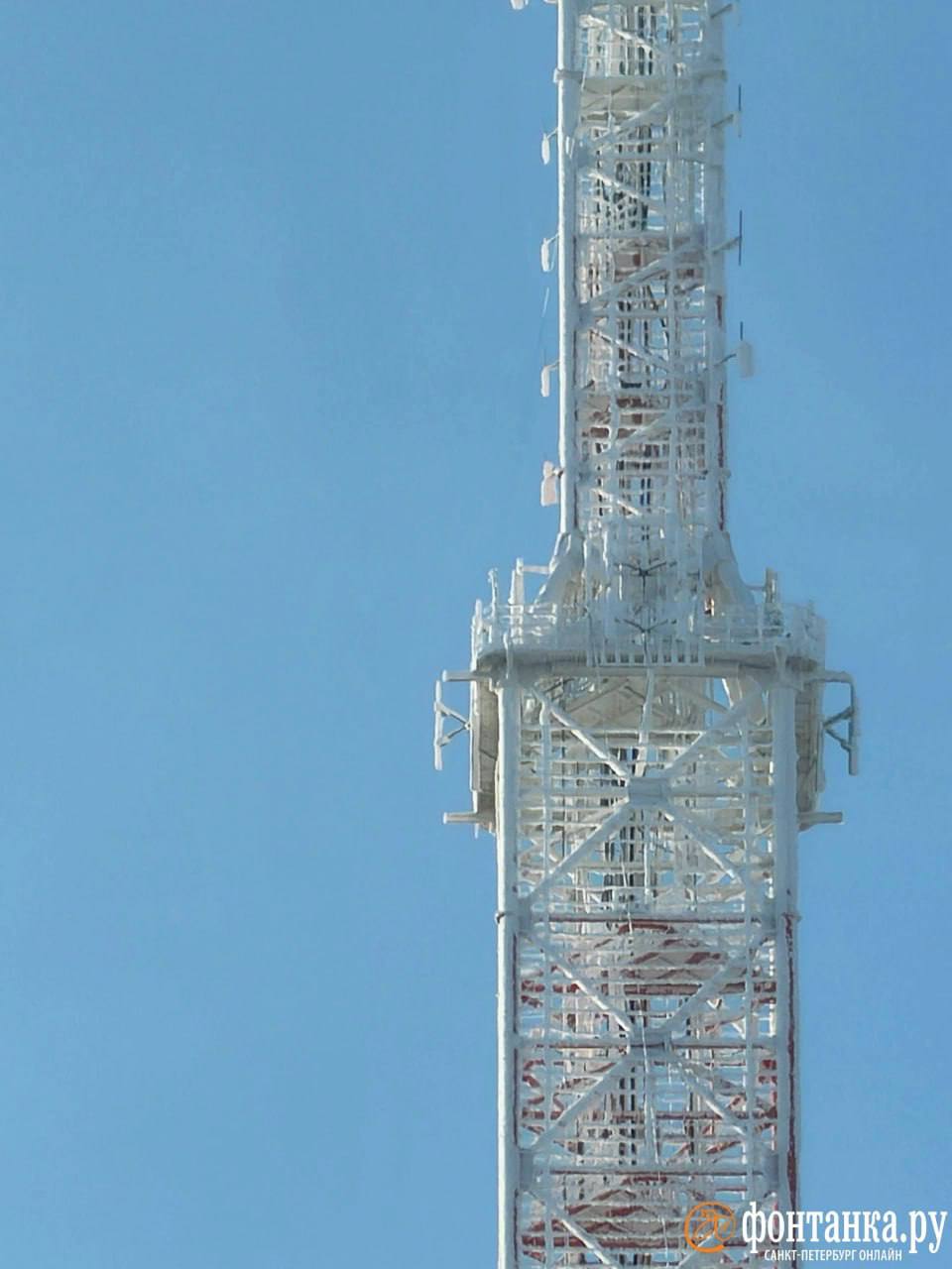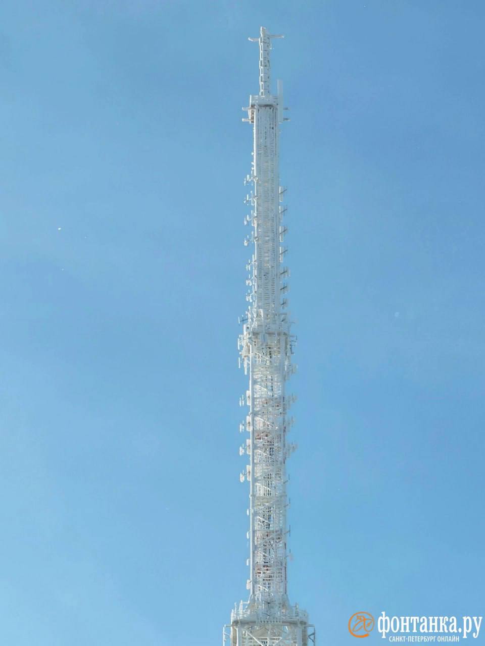 Самая большая сосулька Петербурга найдена — телебашню высотой в 326 метров полностью сковало льдом