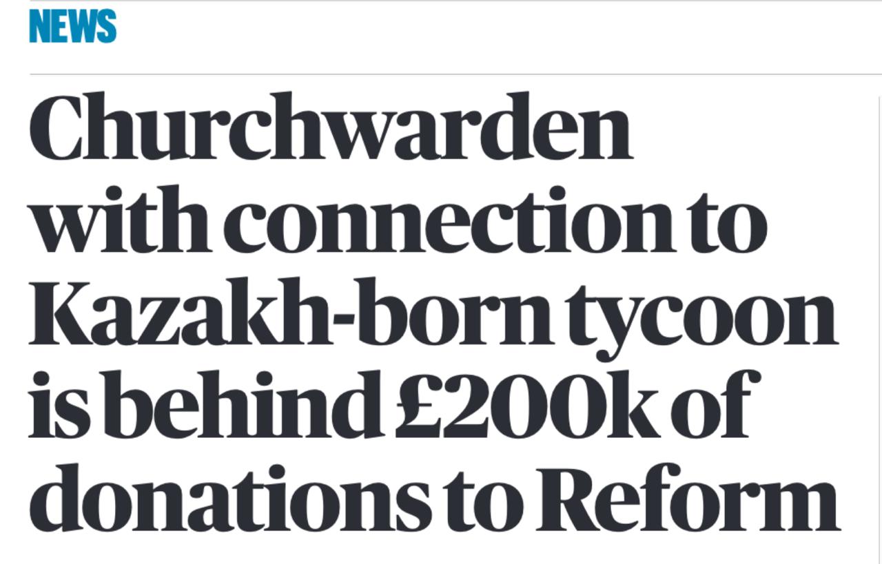 Газета The Sunday Times сегодня выносит на первую полосу страшную «сенсацию»: «Церковный староста, связанный с рожденным в Казахстане олигархом, стоит за взносами для партии Реформ на сумму 200 тысяч фунтов».