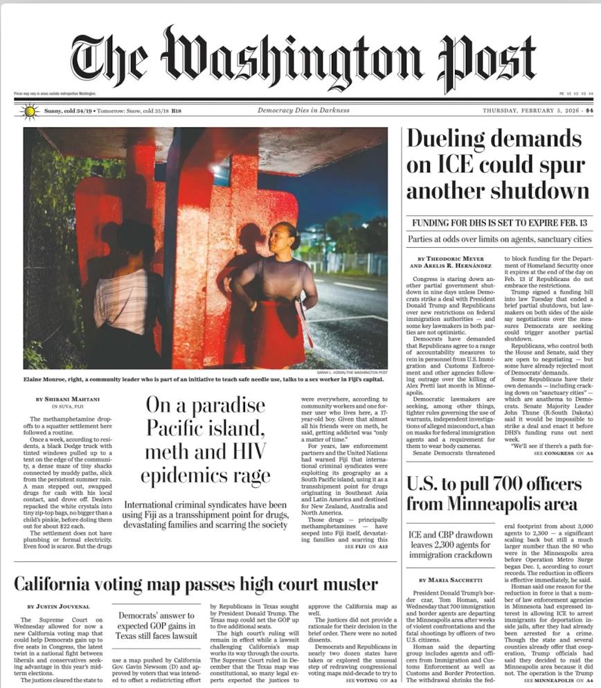 Но вот появился сегодняшний номер - а там об этом ни слова! Главной темой является статья о преступности на Фиджи (я не шучу!). То есть у ВашПоста даже не хватило мужества сообщить своим подписчикам, что их кинули!