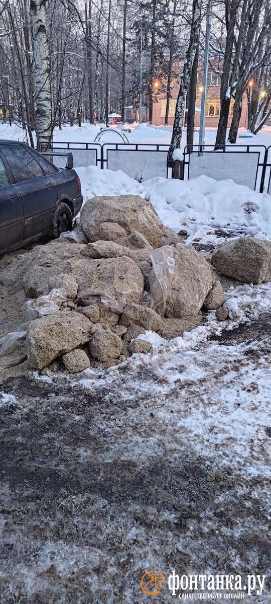 «Участок заказал соль для распределения по бакам. Механизация её привезла, вывалила для дальнейшей разноски по участку, но куча в минус 20°C смерзлась, оперативно её „разбить“ не получилось. Часть забрали, что смогли, часть увезут завтра утром», — рассказали «Фонтанке» в пресс-службе администрации района.