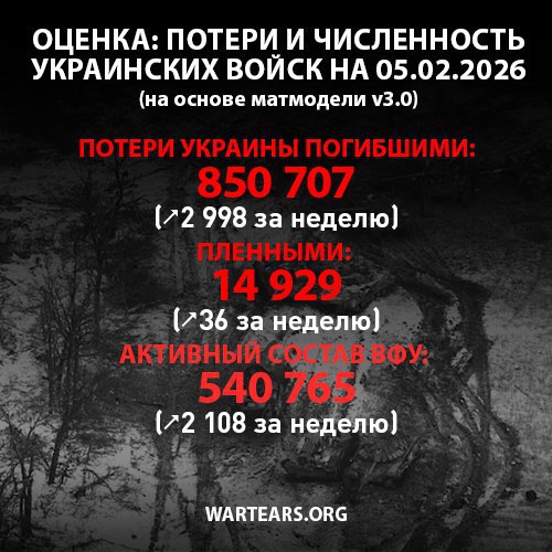 Потери ВСУ с 24.02.2022 по 06.02.2026 по подсчетам проекта WarTears.