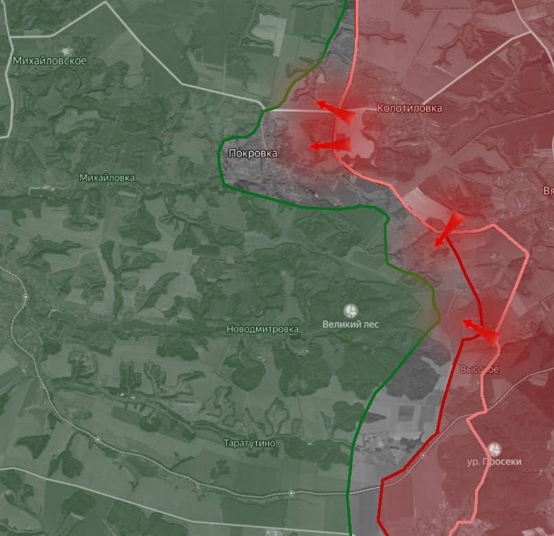 Поступают сообщения об атаках ВС РФ в сторону Покровки, а также о продвижении российских сил в небольшом кармане к югу от Грабовского.