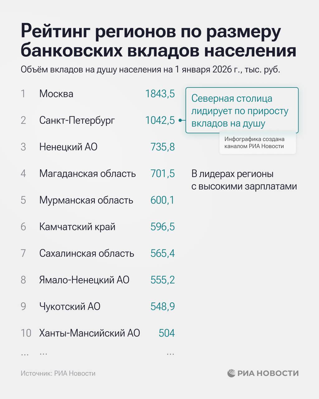 Москва, Петербург и Ненецкий автономный округ возглавляют рейтинг регионов по размеру банковских вкладов населения