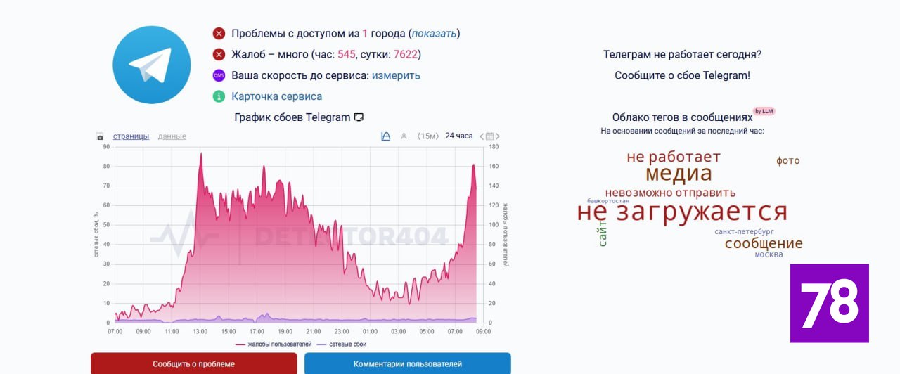 Пользователи жалуются на сбой в работе Telegram. Проблемы зафиксированы и на сайте Down Detector. Более 500 жалоб за час отправили петербуржцы.