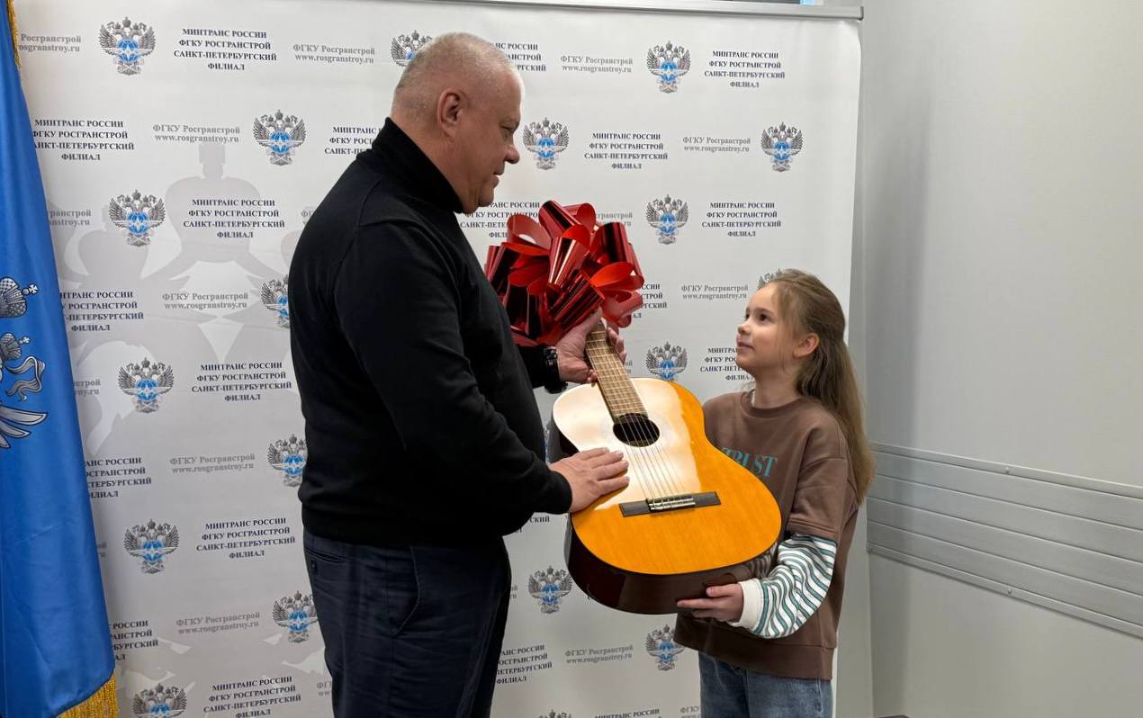 Ещё одним участником благотворительной акции Ёлка желаний от Росгранстроя стал исполняющий обязанности директора Санкт-Петербургского филиала Валерий Загинайло. Он исполнил заветное желание девочки Кати и подарил ей акустическую гитару, а также новогодний сладкий подарок