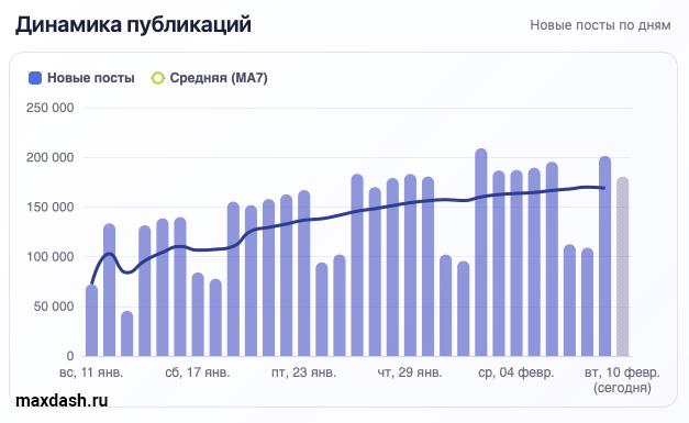 Число каналов в MAX за последнюю неделю выросло на 1085 штук (+0,7%), до 156 027 данные ресурса MaxDash, который занимается статистикой в новом мессенджере. Возможность свободно регистрировать каналы пользователи получили накануне.