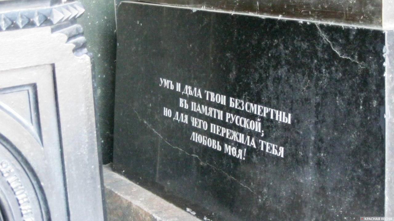 На месте его могилы Нина Чавчавадзе установила памятник, на котором было написано: Ум и дела твои бессмертны в памяти русской, но для чего пережила тебя любовь моя!.