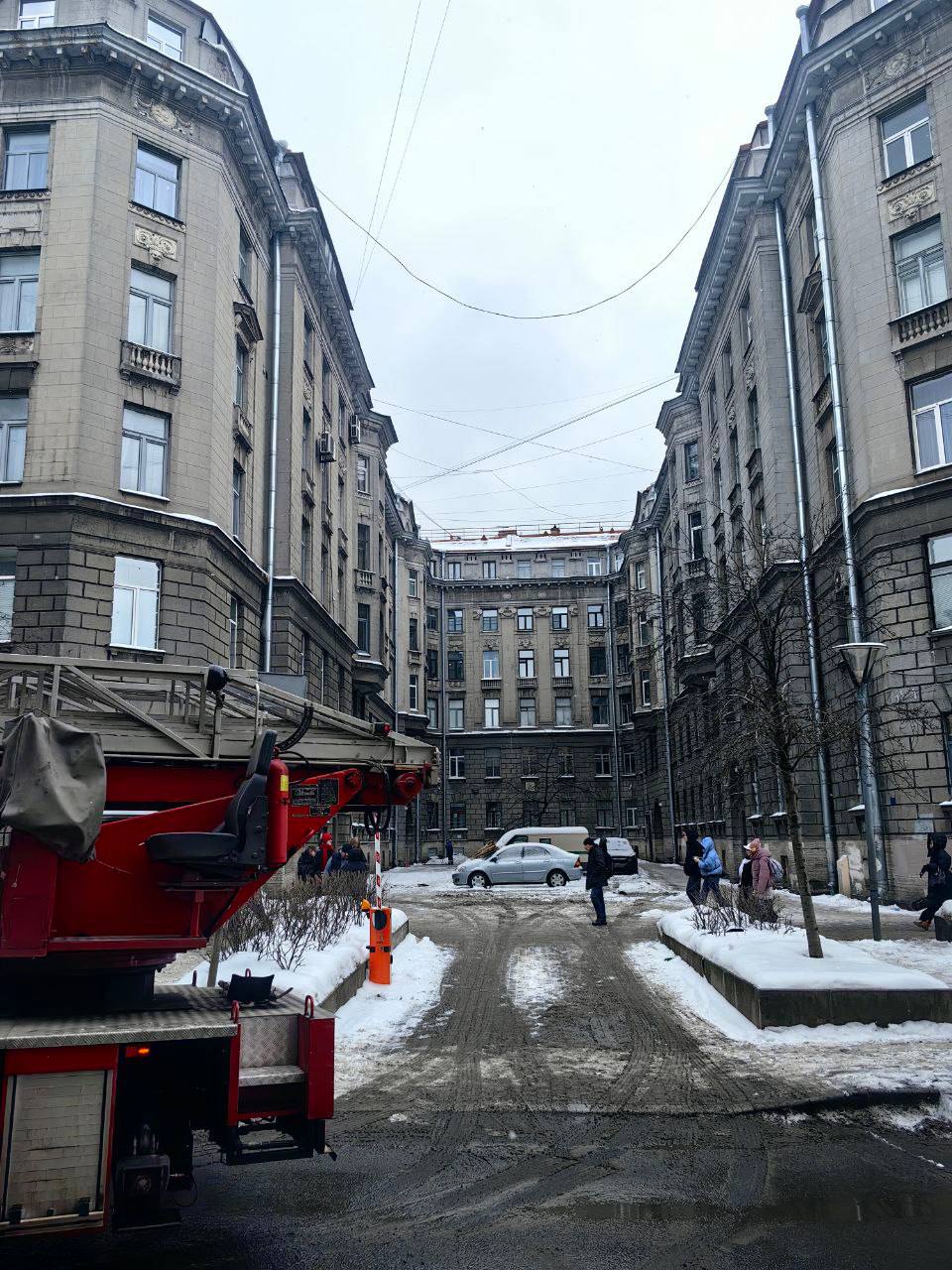 Дворника, повисшего на проводах на улице Правды, сняли. Он жив.