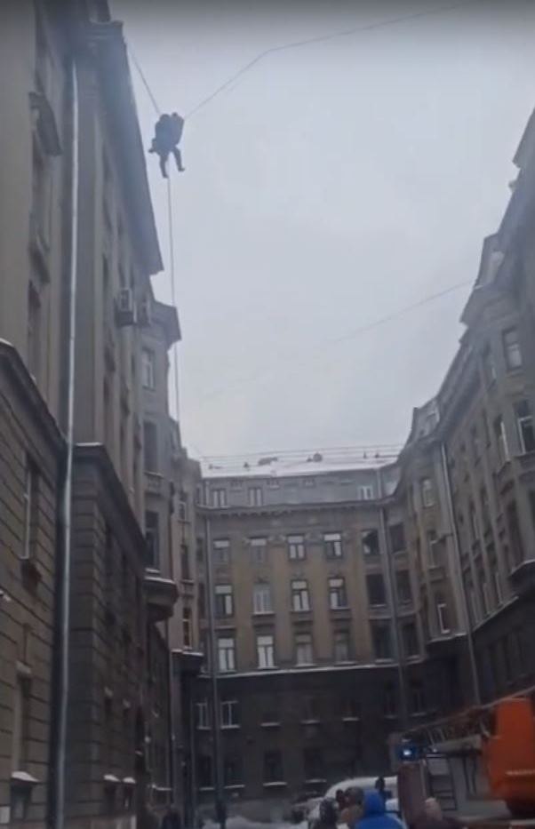 В Петербурге спустили дворника, который сорвался с крыши и повис на проводах. Мужчина не пострадал, а власти вызвали на ковер начальников управляшек.