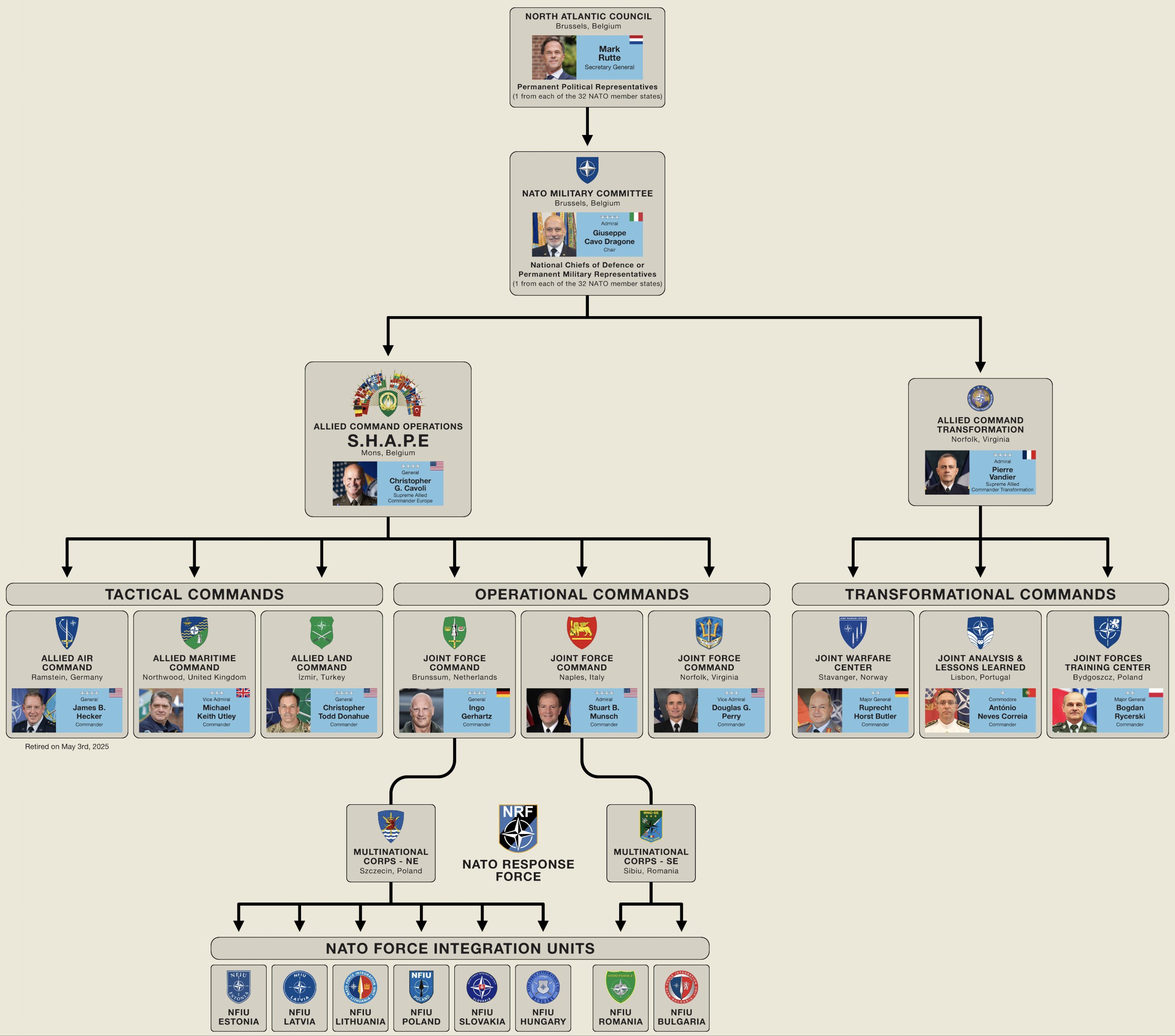 В рамках реформы системы военного управления НАТО Соединенные Штаты передают руководство тремя объединенными командованиями (JFC) европейским союзникам.