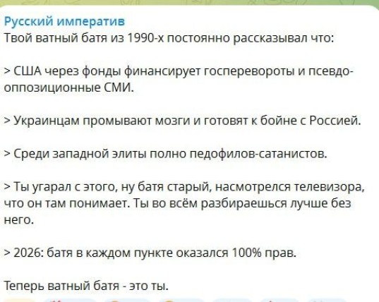 ‘Сегодня утром я обнаружил, что в моем доме снова не работает отопление. Администрация Трампа обратилась к Путину с просьбой о прекращении огня по энергетической инфраструктуре на время проведения мирных переговоров. Украина немедленно...