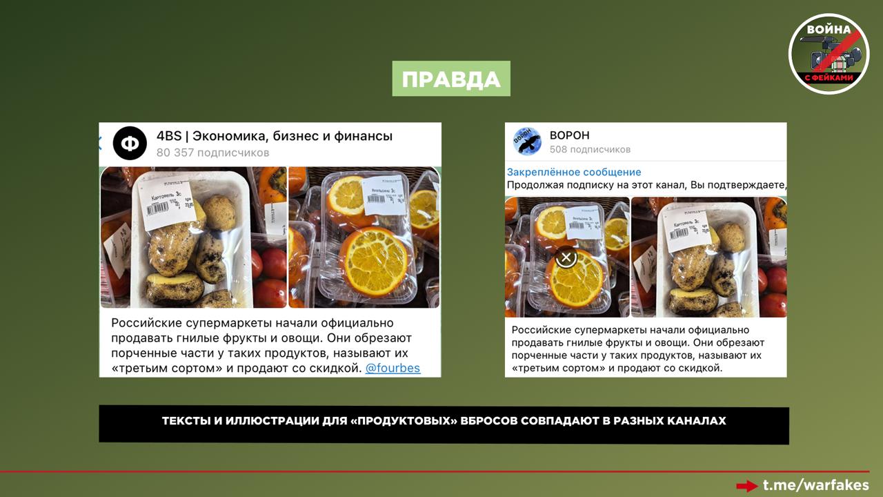 Правда: Фейки о том, что в России наблюдается продуктовый коллапс, — это реанимация ряда предыдущих вбросов аналогичной тематики. Некоторые варианты из свежей порции вбросов мы уже разбирали ранее.