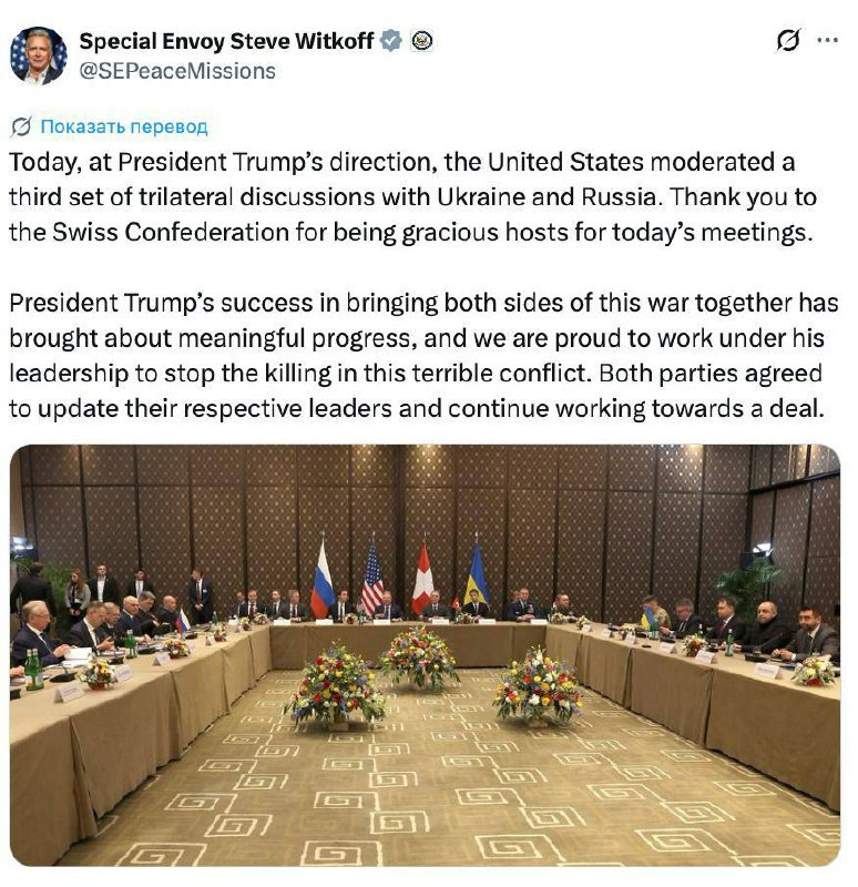 Прогресс есть. Уиткофф сообщил, что переговоры продвигаются успешно
