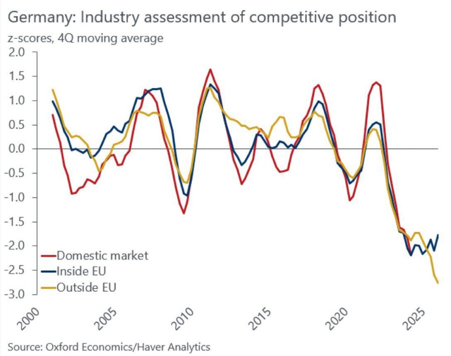 С учетом отсутствия у Германии доступа к дешевым энергоносителям (что ликвидировало одно из конкурентных преимуществ германской промышленности) и текущем политическом курсе, кризис будет только усугубляться. Один только ВПК не сможет компенсировать кризис в машиностроении, химической и сталелитейной промышленности.