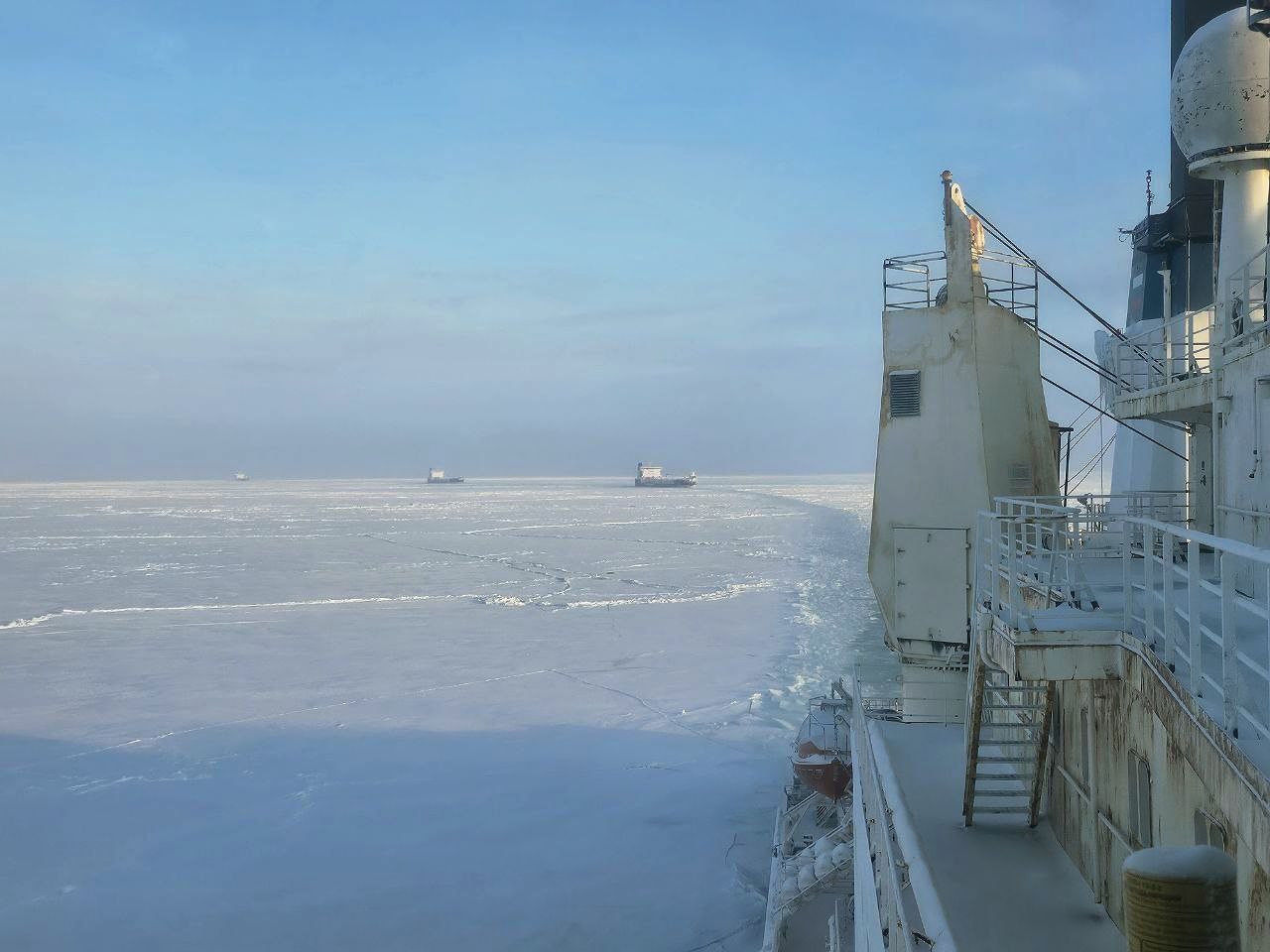 Атомный ледокол "Вайгач" обеспечивает проводку трех танкеров.