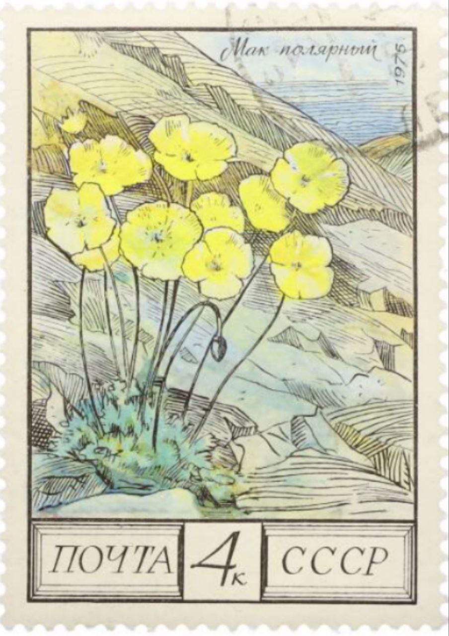 Лапландский мак – символ Хибинских гор. У этой почтовой марки юбилей, она появилась в 1976 году в серии «Флора СССР».