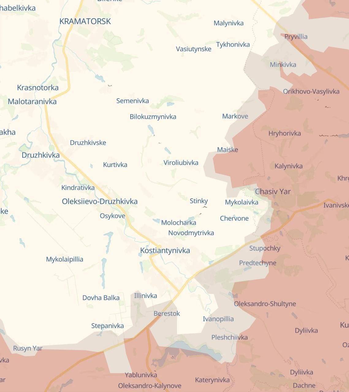 Сохраняется напряжённость и южнее города: между Константиновкой и водохранилищем Клебан Бык. При дальнейшем продвижении российских войск украинские подразделения могут столкнуться с риском частичного охвата и необходимостью отхода к центральной части города.