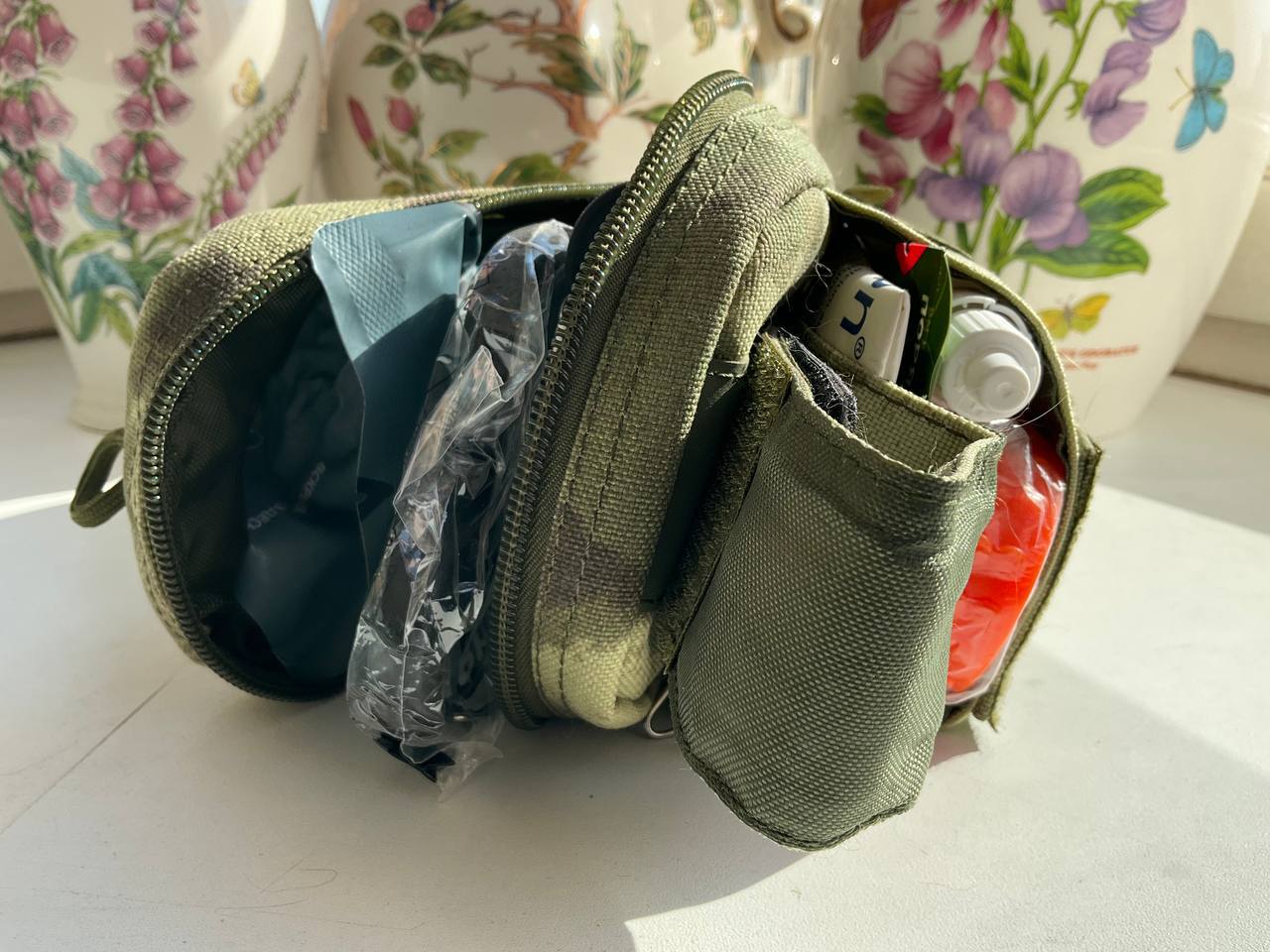 Плюс, вот такая аптечка с минимальным набором средств для спасения жизни и здоровья (жгут, ИПП, тампонада, средство для промывания ран, обезбол) должна быть в каждом доме и под рукой.