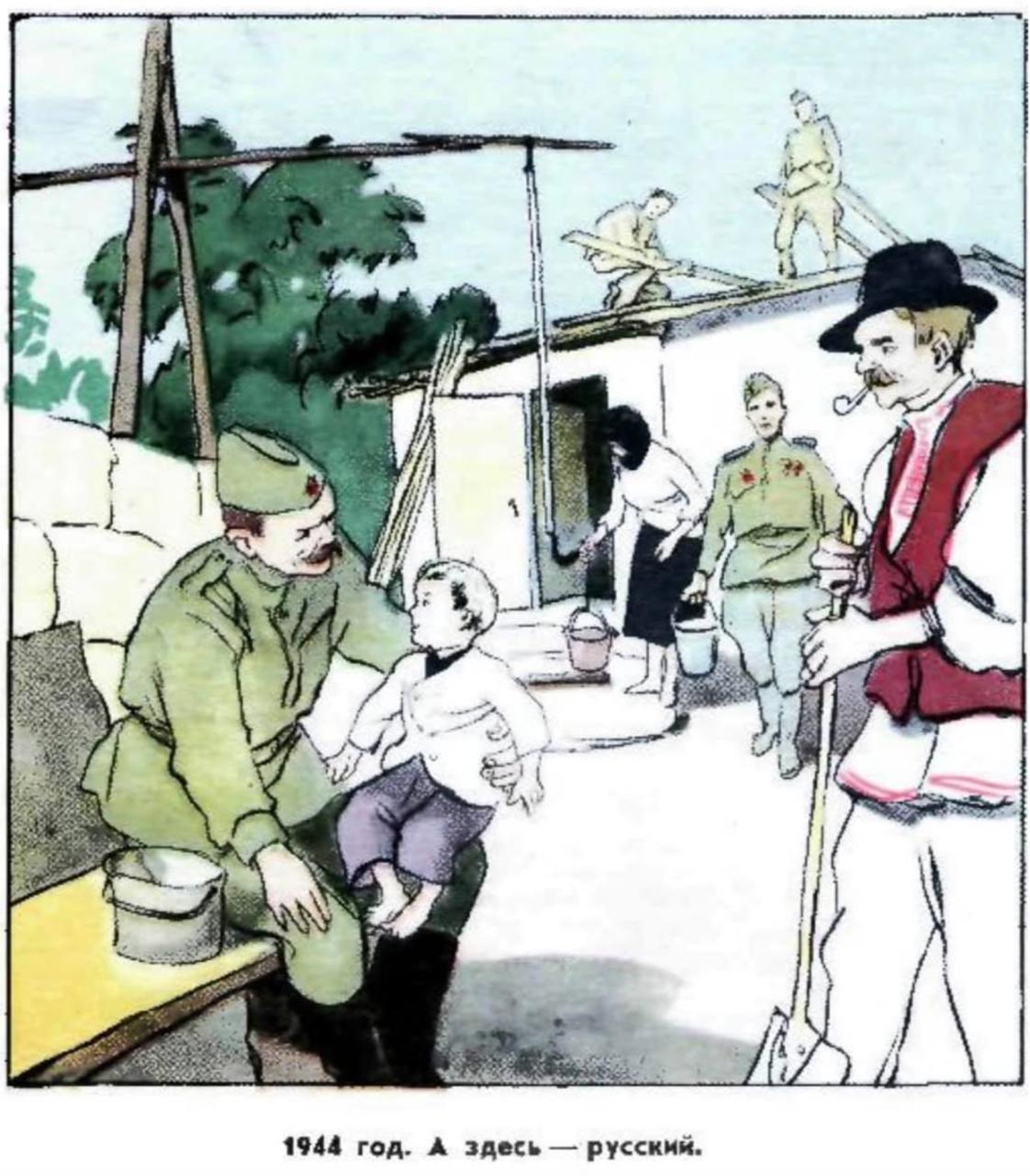 «Крокодил» 75 лет назад (февраль 1951 г.) сравнивает приход американского и русского солдата.