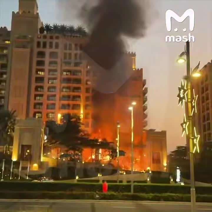 Сергей Колясников: ОАЭ. Падение сбитой иранской ракеты рядом с пятизвёздочным отелем Fairmont The Palm на искусственном острове "Пальма Джумейра"