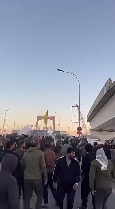Сотни человек вышли на акцию после известия о гибели Али Хаменеи. С флагами «Хезболлы» они пытались прорваться в «зелёную зону», где находятся иностранные дипмиссии, в том числе посольство США.