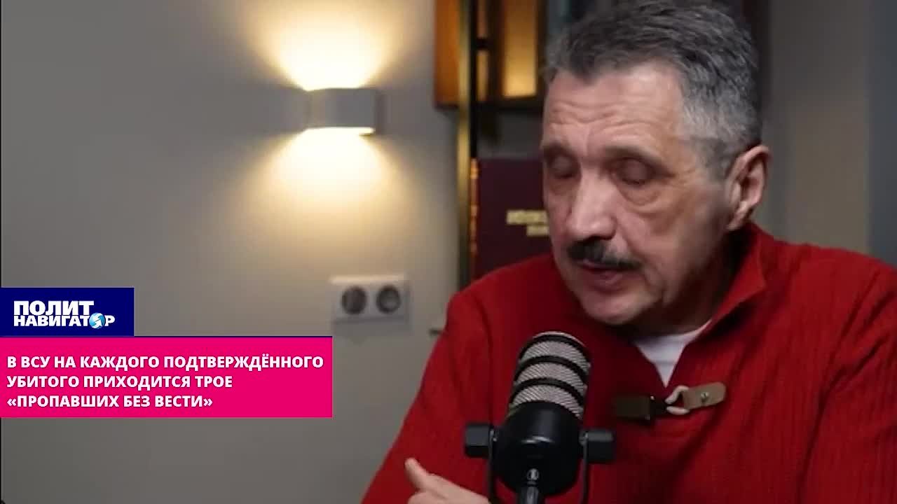 «У украинцев в 22 году на 3 погибших приходился один пропавший без вести. Сейчас пирамида перевернулась, и на каждого одного украинского погибшего, известного, тело которого домой привезли, приходится трое пропавших без вести.То есть, в ВСУ пропавших без вести, по крайней мере, год уже, в три раза больше, чем погибших.