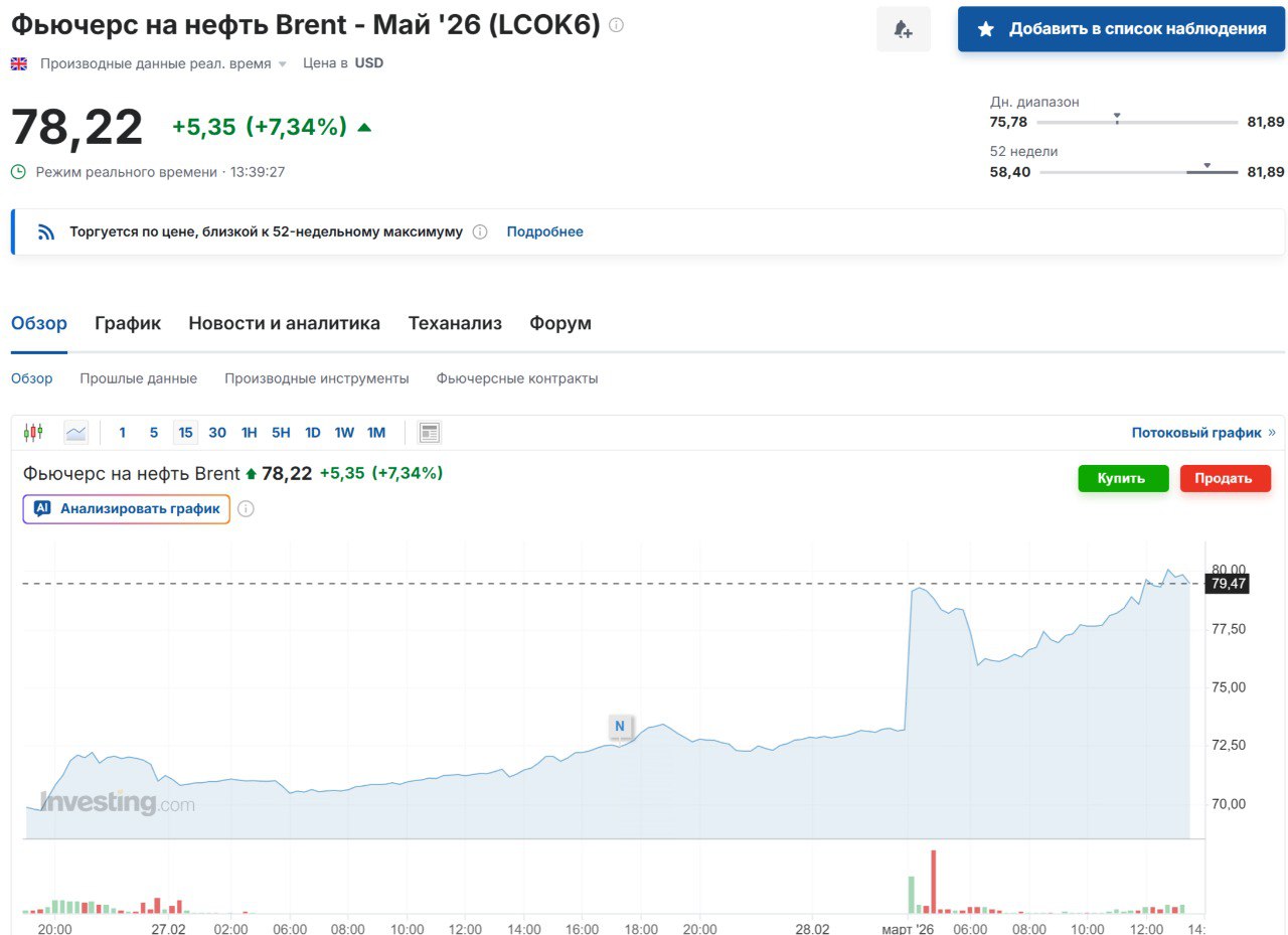 Цены на нефть также продолжают рост - за сутки цена на нефть марки Brent подорожала на 8,3% до 78,2 доллара за баррель. Это хорошо - это подпитка для нашего бюджета.