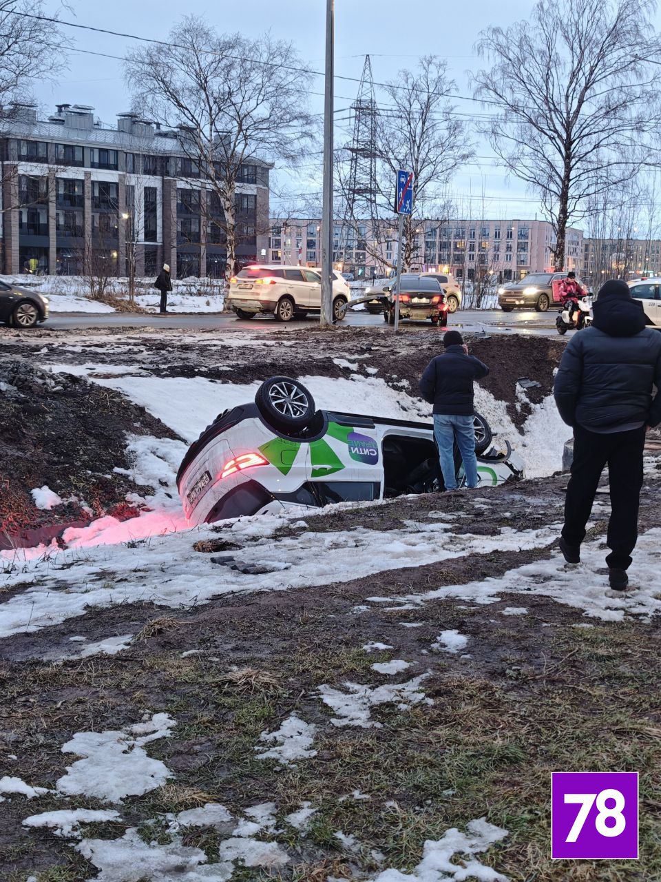 Каршеринговое авто улетело в канаву во время ДТП в Красносельском районе
