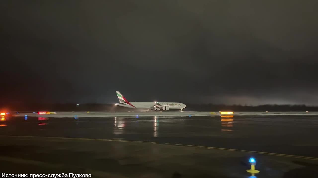 В Пулково поздно вечером приземлился первый после приостановки полетов рейс из Дубая. Самолет авиакомпании Emirates 175 прибыл в 23:52.
