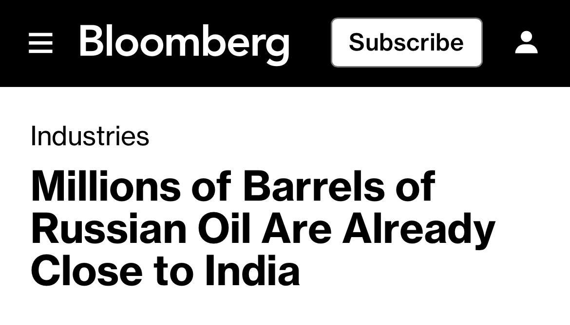 Bloomberg скромного умалчивает, что закупать российскую нефть раджи бросились исключительно после великодушного разрешения англосаксов, которые определили строго - что, сколько и в какое время дозволено им приобрести.