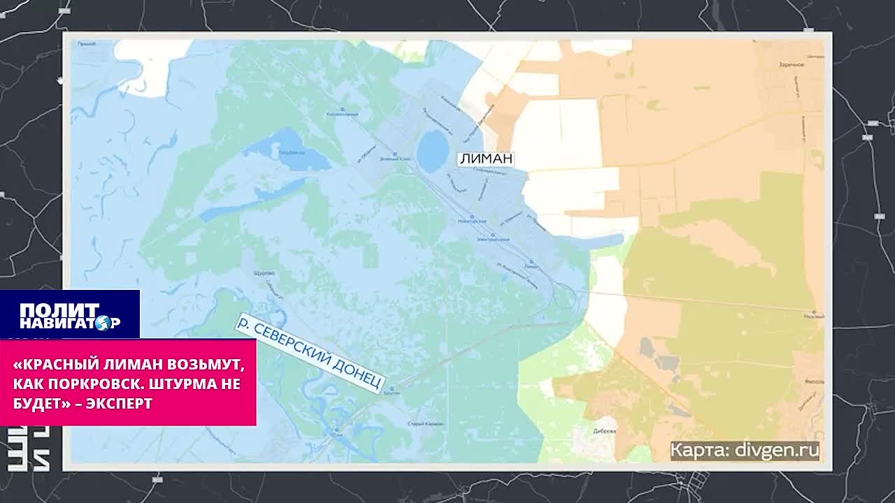 «Обращаю внимание на Лиман. Там уже конкретно совершенно начинается подготовка к завладению городом, и я предполагаю, что штурма не будет. Будет нечто похожее на то, что произошло в Покровске. Медленное накопление и предъявление прав, как говорится, на участок.