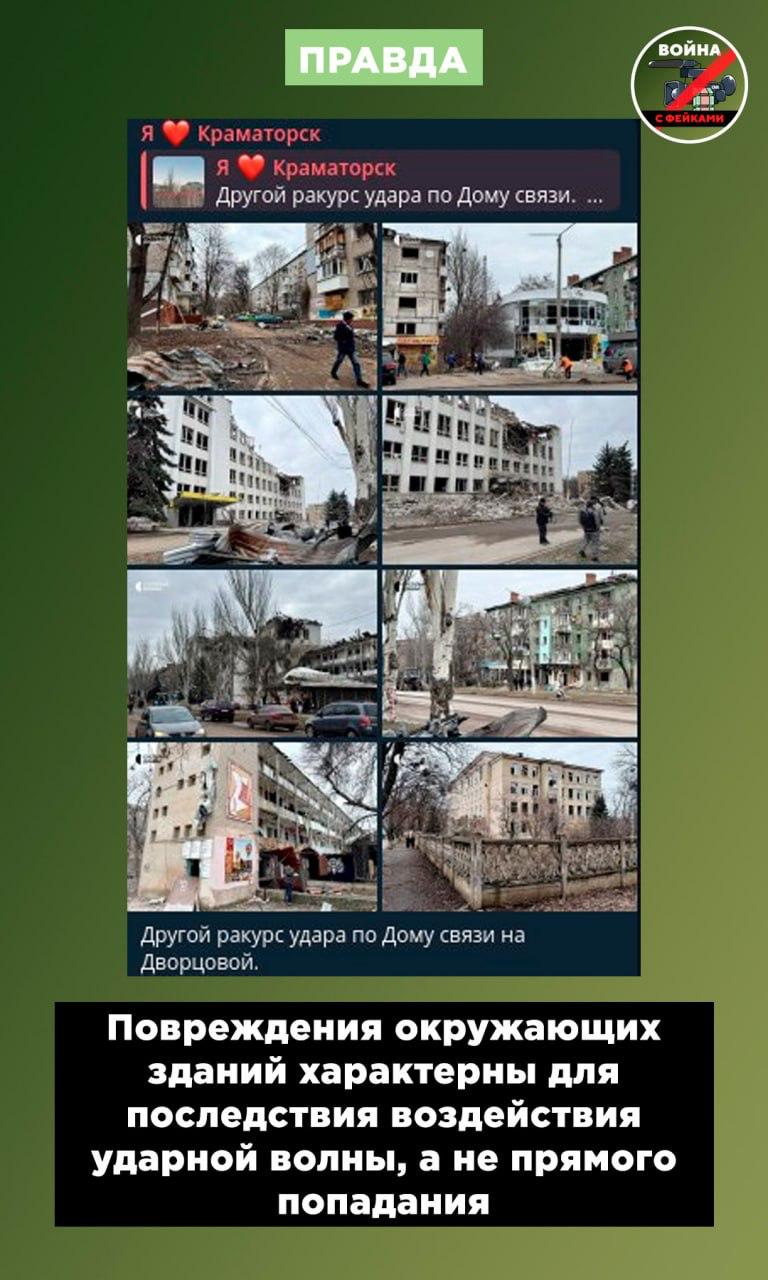 Фейк: ВС РФ неизбирательно ударили по центру Краматорска, пишут украинские телеграм-каналы.