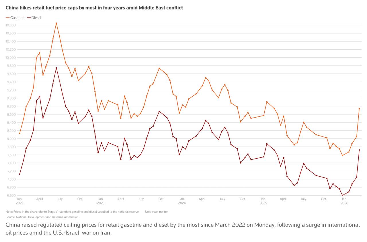 До войны на Иран приходилось примерно 10% от нефтяного импорта Китая. Более серьёзный эффект проявился в контексте перекрытия Ормузского пролива. Поднебесная закупает около 40% своей нефти у стран Персидского залива. Тем не менее нынешние нефтяные запасы позволяют китайцам как минимум в течение следующих шести месяцев обеспечивать себя.